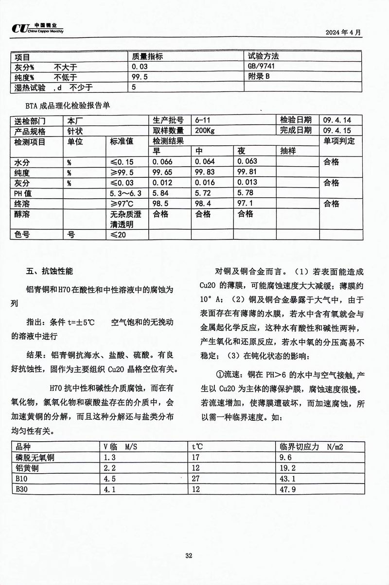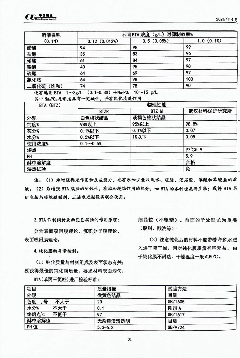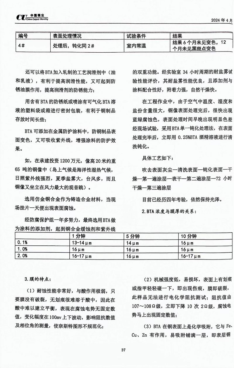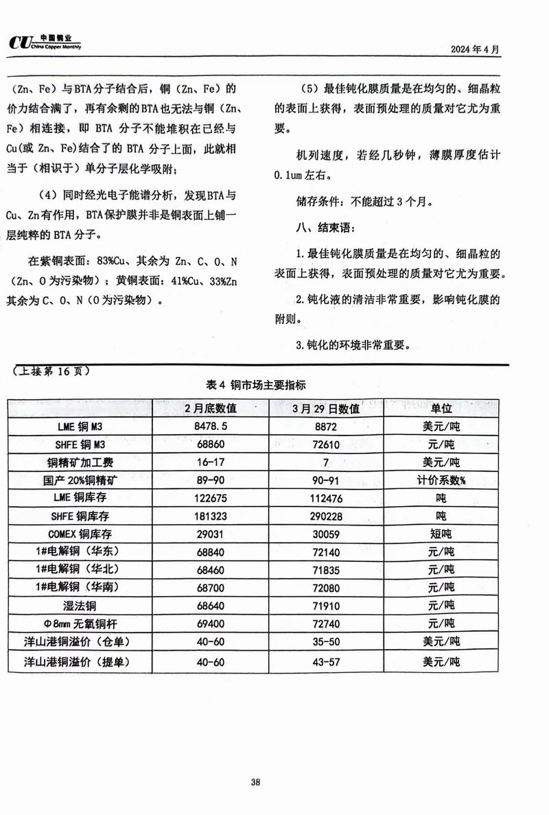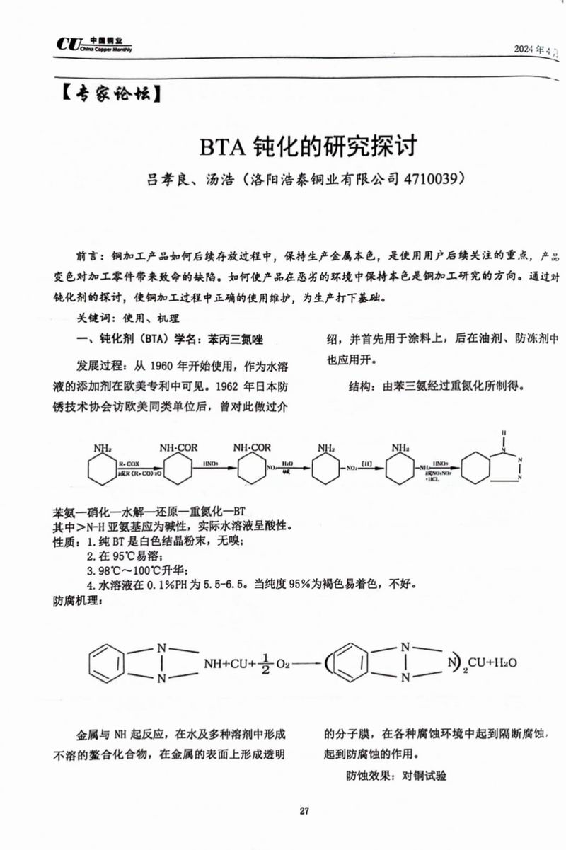 《中國銅業(yè)》專家論壇洛陽浩泰銅業(yè)對BTA鈍化的研究探討 發(fā)布時間:2024-04-25點擊:2089來源:洛銅_銅板_銅帶_電纜銅帶_銅排_銅管_銅棒_銅箔_銅材價格_洛陽浩泰銅業(yè)有限公司