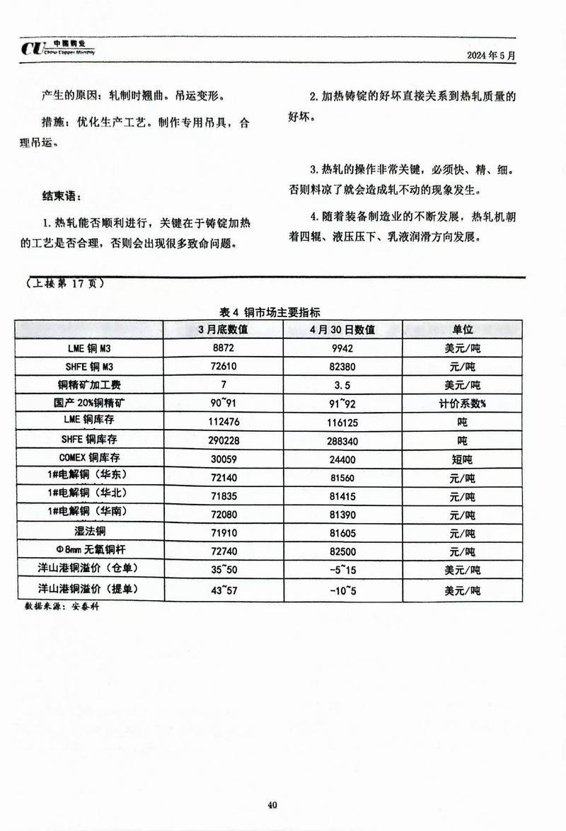 《中國銅業(yè)》專家論壇洛陽浩泰銅業(yè)對熱軋工藝的探討 發(fā)布時間:2024-09-03點擊:1699來源:洛銅_銅板_銅帶_電纜銅帶_銅排_銅管_銅棒_銅箔_銅材價格_洛陽浩泰銅業(yè)有限公司